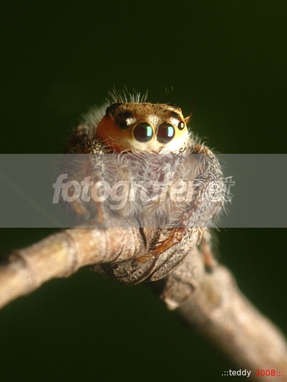 sama dengan foto saya kemaren...si jumping spider ini memang gesit dan susah di foto...saya saja banyak gagalnya....tapi foto ini sudah lumayan..meski fokusnya agak lari tapi dengan posenya yg nyentrik begitu dan komposisi yg pas, membuat foto ini menarik dan unik...salam