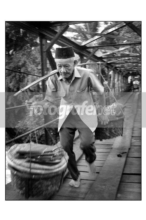 Di ambil secara candid saat seorang kakek yang sudah sangat tua berjalan melintasi jembatan yang berada di atas Sungai Cisadane, Kota Bogor, membawa buah nangka yang akan di jualnya pada pasar ketika pagi hari. Thanks to Kak Wandi (Suwandi Gani) yg udah ngedit foto ini!
