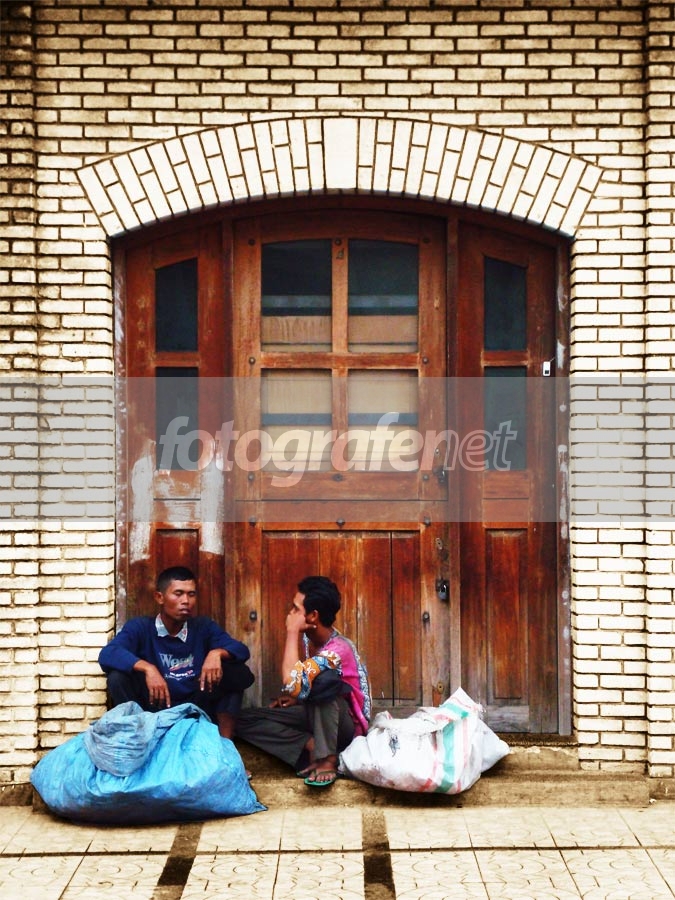 ketika gerimis turun, si abang berteduh, mengobrol seraya melepas lelah di salah satu sudut jalan bragannsori, agak shaky krn sambil sibuk menjaga payung supaya tidak ditiup angin