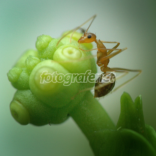 Biasanya semut bukan obyek yg menarik utk makro, tapi yang ini beda, apalagi didukung obyek tanamannya. Keren.