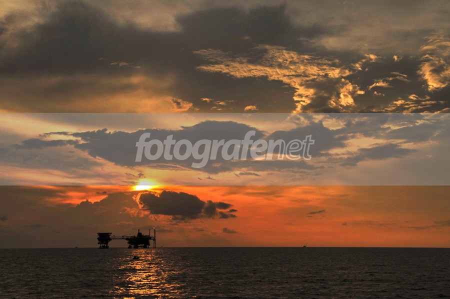 Di tengah laut tak banyak object yang bisa diabadikan kecuali langit dengan awan dan anjungan yang tak pernah lekang ..rnHanya atur saturasi, level dan kontras ...rnrnThanks for all ...rnDate Time Original: 2008:02:23 17:06:56