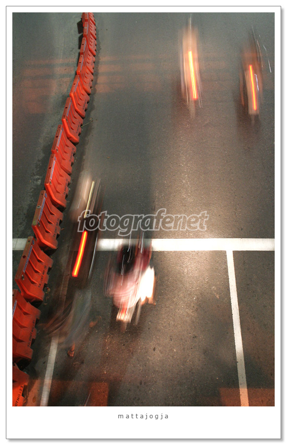 Ini justru bagus, gila!! Komposisinya jelas kan? Ada pola repetitif pembatas jalan yang meliuk-liuk, diimbangi sama lalu-lintas kendaraan yang bergerak meliuk-liuk juga ditandai dengan motion blur-nya. Great shot! i dont know why every body seems not look at deeper meaning of something ...maybe you're too smart to them :D