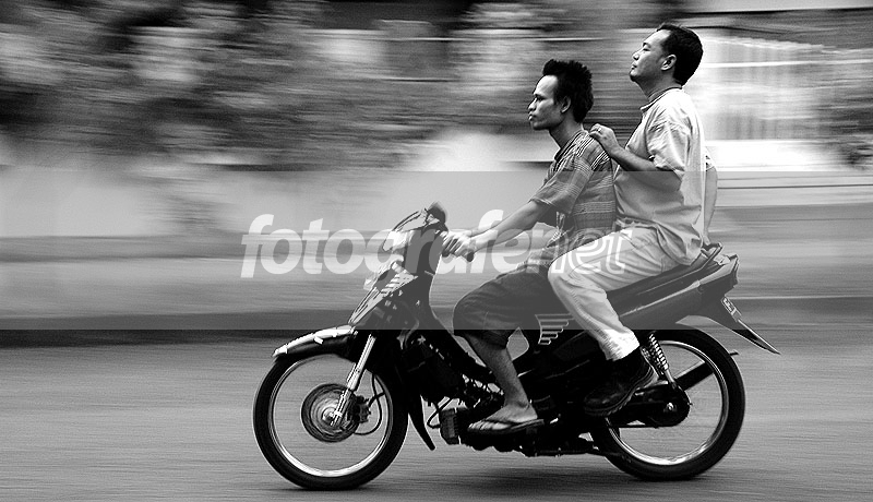 Date Time Original: 2008:03:20 17:47:22nnFocal Length: 44mmnnMasih di seri belajar panning yg dikombinasikan dengan BW.nnSalah satu contoh pengendara motor yg bernyali besar. Udah gak pake helm, masih ngebut, sampe2 orang yg dibonceng ketakutan... Terlihat tangan orang yg dibonceng berpegangan erat sama besi di belakangnya + mukanya sedikit was was.. =D