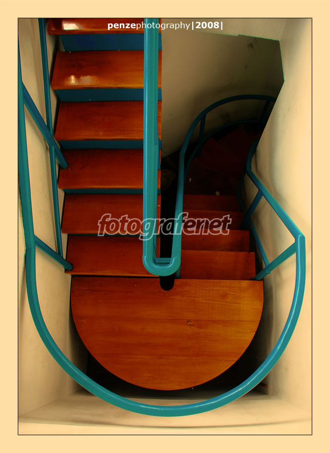 Angle extreme yang menghasilkan foto keren. Warna biru pada tangga sangat menguatkan permainan curve ini.