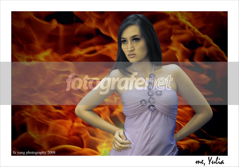 Camera : Nikon D200 V3+ rnLokasi : stand TRONIC @FOCUS 2008 - JHCC JakartarnModel : Yulia rnrnrnThanks buat bro Nicko Darwis atas sesi acaranya , sangat memuaskan bro ...rnrnNote: rn BG berasal dari kertas koran yang dibakar dan shot dgn D200 V3+ pula, cuman diisengin warnanya aja rnrnrnrnBahan - bahan yang diperlukan : rn - Camera : Nikon D200 V3+ Harlim rn - Format : JPG rn - Filename : _DSC1699.JPGrn - Dimensions : 3872 x 2592 rn - Exposure : 1/40 sec at f/3.5 rn - Exposure Bias :+1 EV rn - Flash : Did not fire rn - Exposure Program : Manual rn - Metering Mode: Spot rn - ISO Speed Rating : ISO 250 rn - Focal Length : 30mm rn - Lens : Nikon 17-35 f/2.8 AFS IF-ED rnrnCara memasaknya : rn - Open file pake CS2, utak - atik tonalnya rn - Sajikan dengan Framing - Title & Resize dari CS2 rn rnSekarang \"me, Yulia\" siap untuk disajikan .... selamat menikmati rnrnThanks buat FNers yang sudah berkenan mampir dan memberikan kritikan dan masukannya yang pedas ... GBU