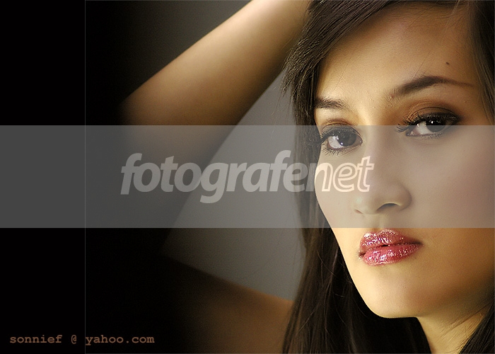 Gradasi itemnya mengganggu. Tangan sebaiknya jangan ditampilin... tajamnya setajam silet... Itu foto istrinya mas Sonny kan? Enak ya mas punya istri cantik yg bisa jadi model. Salam buat istrinya mas... anugrah lho bisa dapet istri cantik gitu mengingat... (hehehe)