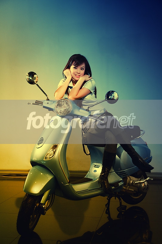 Vespa apaan nih bung? Saya koq baru lihat. Btw eksekusinya oke. Lighting dan tonenya sangat klasik. Sesuai dengan settingannya. Pake 1 lampu 2 flash ya?