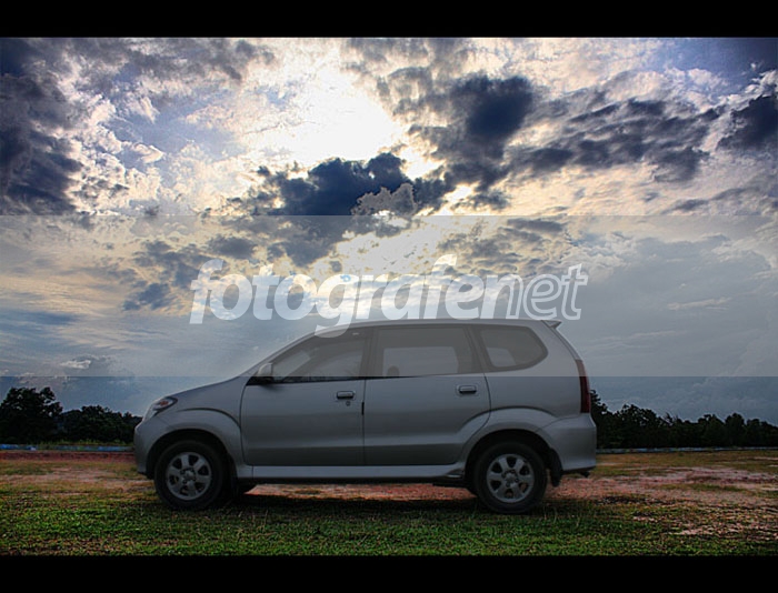 komposisi kurang miring dikit; diambil rasa miring ke kiri (jadi bag depan mobil kelihatan dikit,posisinya nyamping) mobil berasa lebih gagah. langit rada over dan mobil rada under; pakai built-in flash aja untuk posisi backlight gini.; kalau perlu shoot pakai RAw kemudian di adjust pakai level via layer gradient.