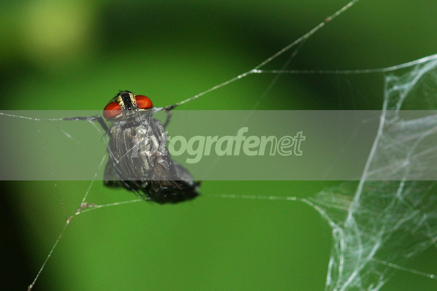 Seekor laba-laba baru saja terjerat jaring laba-laba.rnSang empunya sarang belum juga datang. Padahal biasanya segera datang dan membungkusnya dengan tali ciptaanya.rnrnDate Time Original: 2008:04:19 16:42:16rnISO Speed Ratings: 400