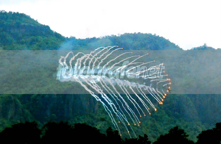Date Time Original: 2008:05:21 10:23:09rnISO Speed Ratings: 1600rnPhoto ini kwalitasnya memang jauh dr sempurna krn diambil dr jarak yg jauh (Faktor keamanan) serta keterbatasan peralatan, kemudian di crop untuk membesarkannya..keliatan agak gelap n noise krn emang asap dr ledakan. Moment ini merupakan demo tembakan oleh Hellycopter COBRA US Marines pada latihan bersama "COBRA GOLD " diThailand..mohon tanggapannya