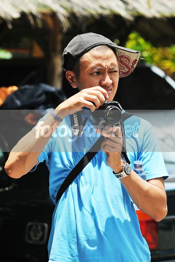 botol air mineral dikempit diketiak kiri lagi...topi miring...mata picing...ckkkckkckk..calon fotografer professional nih....
