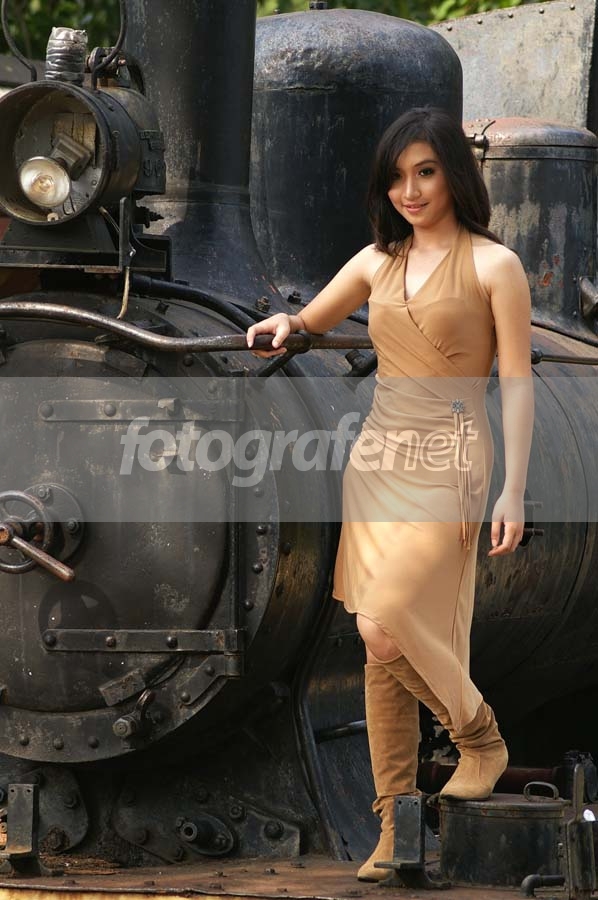 komposisi antara model dan kreta masih bs di explore. di foto, terlihat klo model kurang enjoy n nyatu dgn lokasi.mungkin perlu coba diarahkan biar si model bs berekspresi secara lepas di dekat lokomotif-nya :) ~salam~