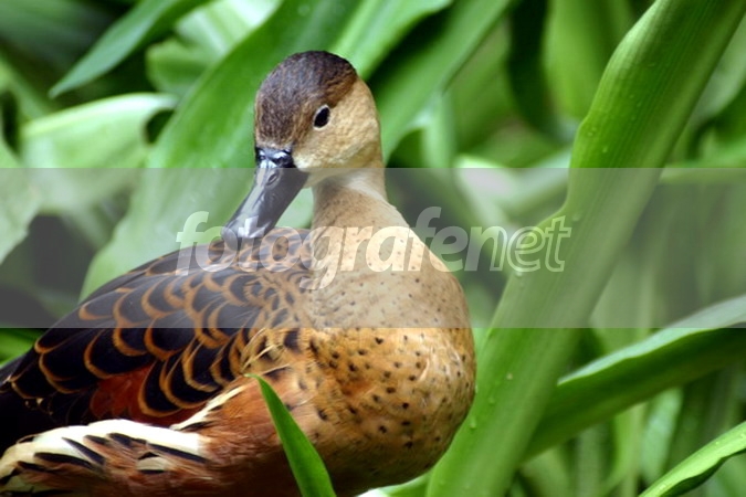 Bebeknya lucu kok:) Warnanya juga sangat serasi dg background daun hijaunya. Kekurangannya antara lain: obyek bebeknya kurang tajam/fokus, komposisinya kurang mantep nih, si bebek kurang ke kanan.