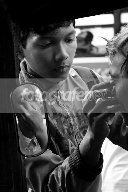 Date Time Original: 2008:06:29 08:43:28nISO Speed Ratings: 200nnmasih dari seri JASH IV 2008nnseorang anak jalanan minta bantuan temannya untuk membetulkan "asesoris"nya.... dengan bantuan kaca spion dari bajaj yang mangkal....nnnsemoga masih bisa dinikmati...nn salam