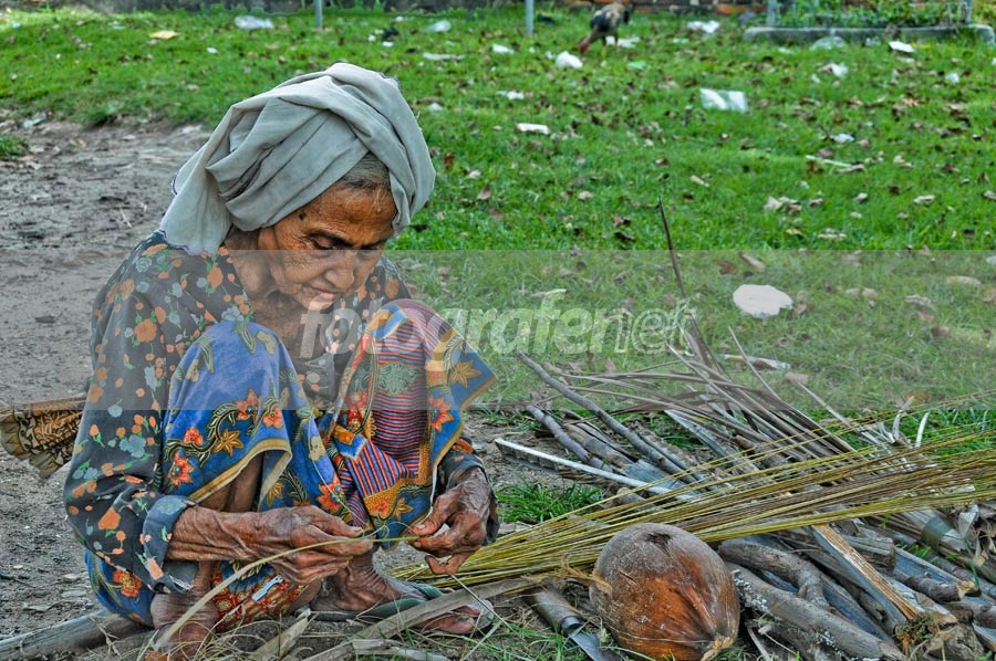 diambil di Banten beberapa waktu lalu. Nenek ini sore hari membersihkan daun kelapa yang jatuh di halaman klenteng yang ada di sanannFL 640, ISO 640