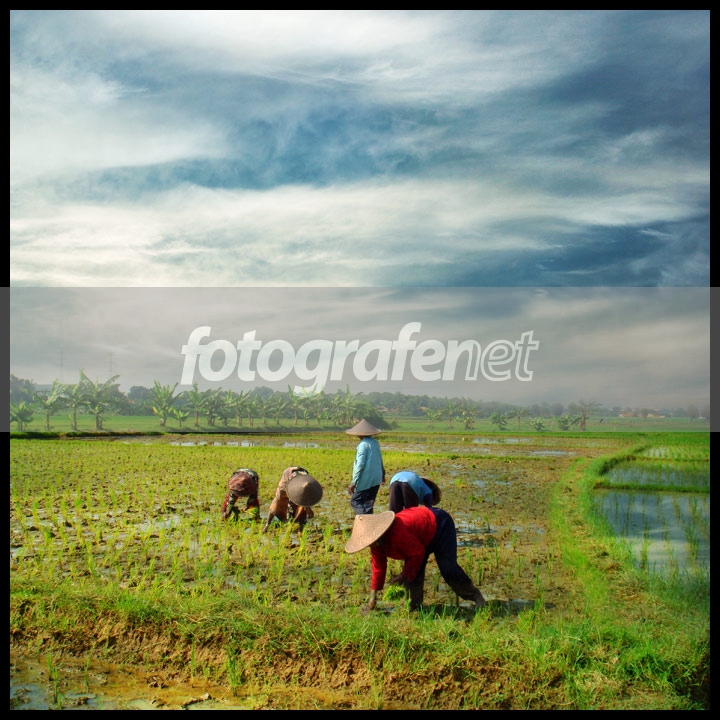 Hasil jepretan pake poket sony tipe lupa...nBu Tani sambil menanam diiringi nyanyian kompak mereka di sawah saat pagi itu.nOlahan dari stok lama nSemoga berkenan