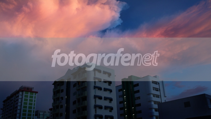 ISO Speed Ratings: 200nColor, level, and contrast enhanced. nnHari itu, sepulang kuliah, pergi ke atap kampus, kira2 sore menjelang malam. Waktu itu sunset, sedangkan di sisi yg berlawanan berawan pekat dan mendung. Ternyata awan tersebut kemudian "bergerak" dan pantulan sunset menjadi terlihat oranye kemerahan pada awan tersebut. Unik, langsung jepret dah. Kritik terbuka bagi siapa saja yg melihat. Thx 4 all.