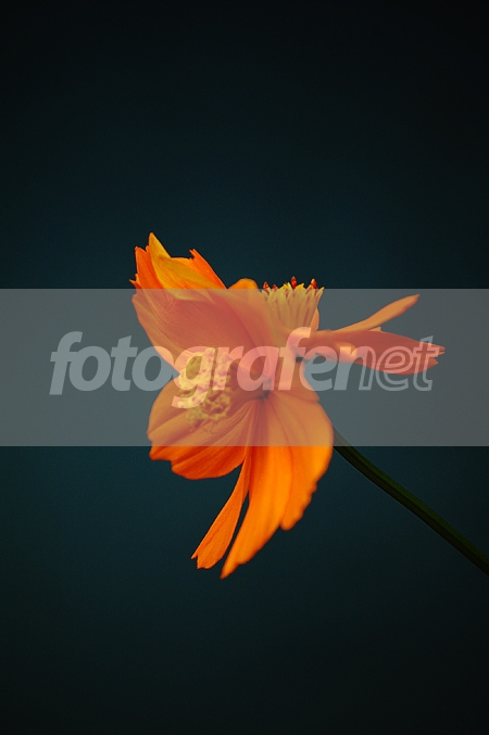 Fokusnya agak meleset yah ... tapi harmoni warna orange bunganya dan biru kelam BG-nya oke banget ...