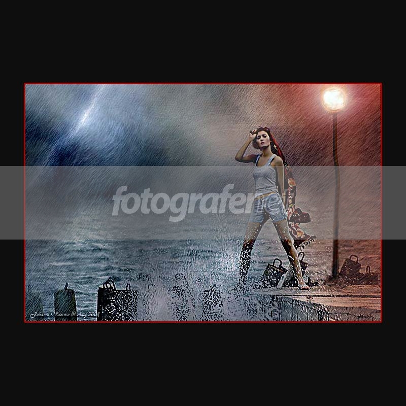 modelnya tampak kurang fokus, disengaja ya? efek hujannya tmpk kurang natural n berlebihan so far idenya bagus eksekusinya agak kurang.. salam semoga berkenan...