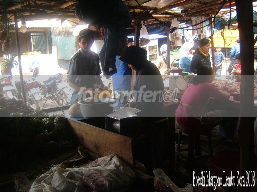 Foto aktivitas pasar yang menarik. Ada baiknya komposisi foto digarap lebih serius agar foto lebih sedap dipandang. Keterbatasan lensa membuat kondisi dengan situasi pencahayaan kontras tinggi seperti di foto ini menampilkan garis batas gelap terang seperti berpendar. Bisa diatasi dengan memotret subyek-subyek dengan situasi pencahayaan kontras normal atau kontras rendah. Tulisan di kanan bawah bersifat non-fotografis, jika dihilangkan tidak akan mengurangi makna foto. Semoga tambah semangat memotret.