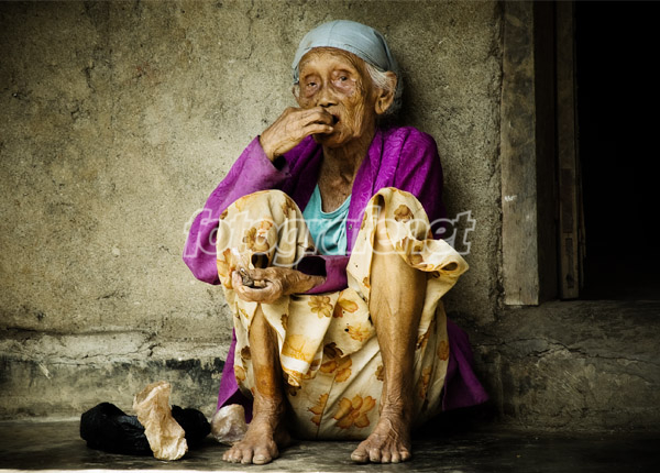 foto ini pas banget dengan judulnya. nenek tua terkesan statis dengan BG tembok yg BW.good worx