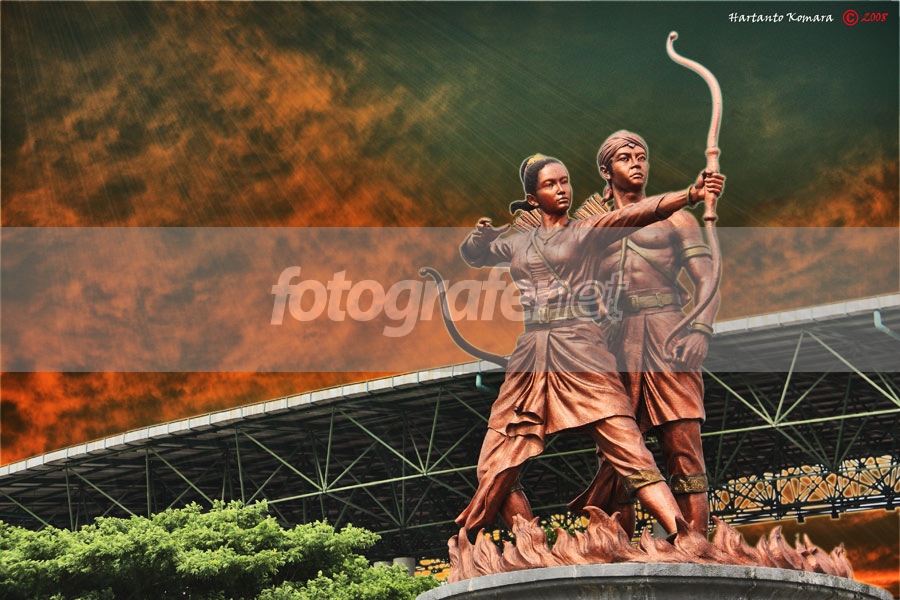 Date: 24 Oct'08 02:21:47 PMrnFL: 70mmrnrnMencoba lensa baru dari Canon nih...lensa all around (di Jkt masih langka neh lensa apa lagi dollar lagi labil)rnrnSekalian belajar blending dengan awan fajar agar warna awan harmonis dengan patung tembaga Shinta dan Rama ini. Photo Awan punya saya juga datanya:rnDate 25 Oct'08 05:11:08 AM pagi masih awan SolornLensa: EF 16-35mm f/2.8L mk II USMrnApperture: f/8.0rnSpeed: 1/20srnISO: 200rnFL= 33mmrnrnROL-nya made in PSrnrnMonggo komen & kripik pedasnya, semuanya berguna untuk evaluasi dalam belajar...rnrnMakasih yang dah mampir...Cheers!