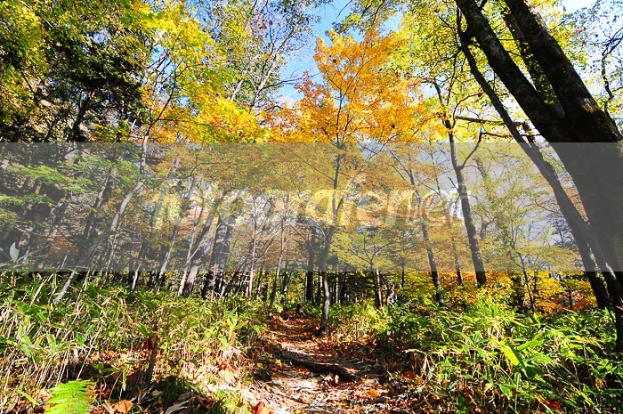 jalan setapak dan mendaki, pada cuaca yang cerah saat musim gugur di hutan-hutan ... nrefreshing jalan-jalan sambil memotret