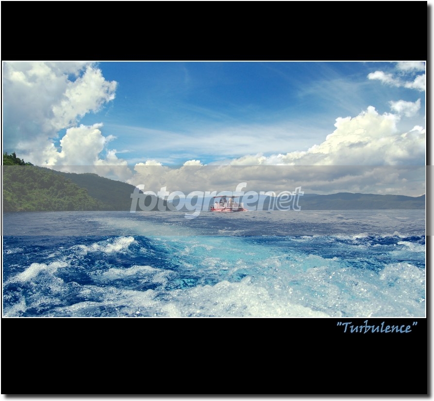 Turbulence didefinisikan sebagai pergerakan fluida secara chaos karena pergerakan suatu benda.rnThat's why pesawat tidak pernah beriringan kalo lagi manuver. Dan ini juga berlaku untuk kendaraan di darat dan di air.rnrnSesi hunting di acara pembubaran panitia SIP 2008.rnMohon pencerahannya, apa yang bisa membuat foto ini lebih baik?rnrnSalam dari Sorowako.rnrnP.S. Edit minor, naikin level langitnya. Air danau as it is dari camera. Dibantu ama filter CPL.