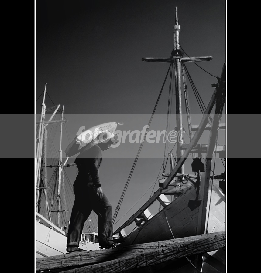 Lagi... potret kehidupan kuli panggul di Pelabuhan Sunda Kelapa, terekam dengan apik dgn item putih yg pas banget.