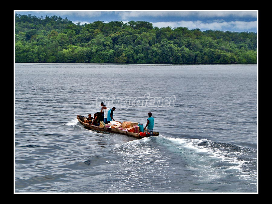walau tanpa "sayap" ... longboat ini berani melaju dengan muatan penuh ...