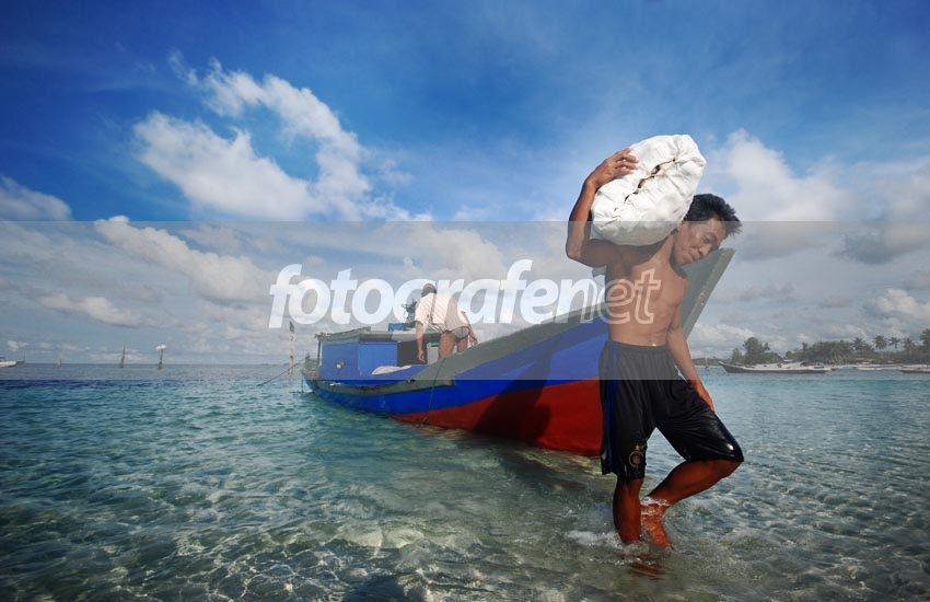 Date Time Original: 2008:03:22 03:59:06nISO Speed Ratings: 200nnKegiatan para pencari kerang di Tanjung Kelayang, dari pagi sampai sore menyelam di pantai-pantai dangkal mengumpulkan berkarung-karung kerang untuk kebutuhan restoran sea food dan lain-lain.
