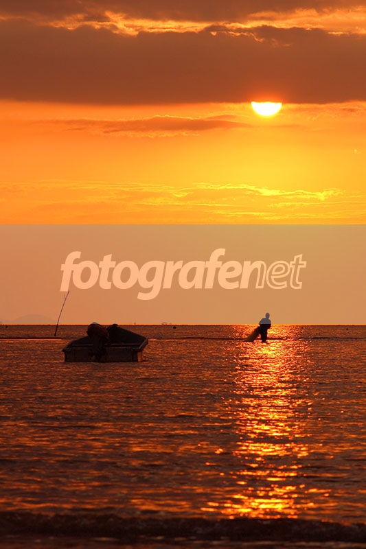 wah, juara ini, pantulan matahari pas segaris dengan pak nelayan, tapi coba awan keemasan di atas awan gelap di crop mungkin lebih muantep, cheers..