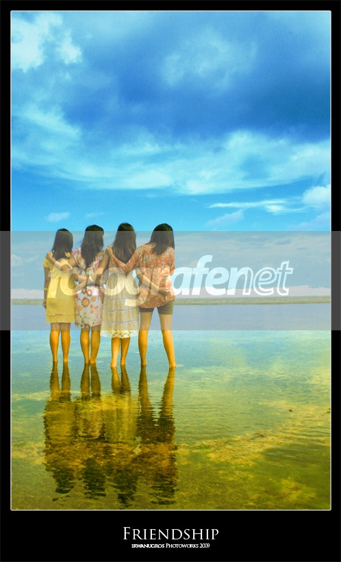 nice photo !!! tapi mau latian kasih komen yg membangun juga... walaupun yg meng-komen tidak lebih baik dari yg dikomenin... coba sedikit mundur lagi agak selangkah, supaya refleksi orang ketiga dari kiri ga terlalu ketat... terus pengaturan tangan2 modelnya dibuat seragam,,, pasti sangar banget nih fotonya... memang "friendship" banget jadinya... semoga berkenan, salam,