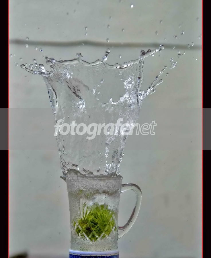 Coba cari gelas yg bening/tak bermotif, biar benda yg dijatuhin ke gelas itu kelihatan..... (atau emang sengaja bendanya dikaburin pake gelas yg bermotif ya?) Sama BGnya kurang bagus.