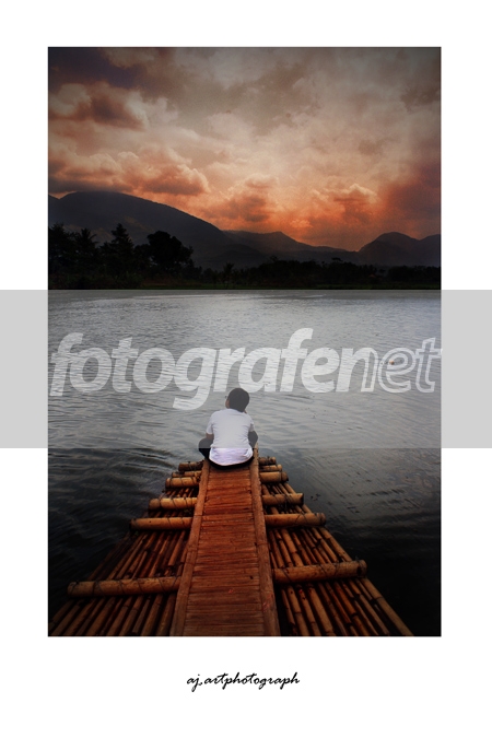 terinspirasi oleh jiwa yang sedang tak terisi, hampa, dan belaka. seolah berdiri di ujung rakit yang hampir hilang tertimbun dalamnya air di danau.. dan senja yang mempererat rasa hampanya diri.