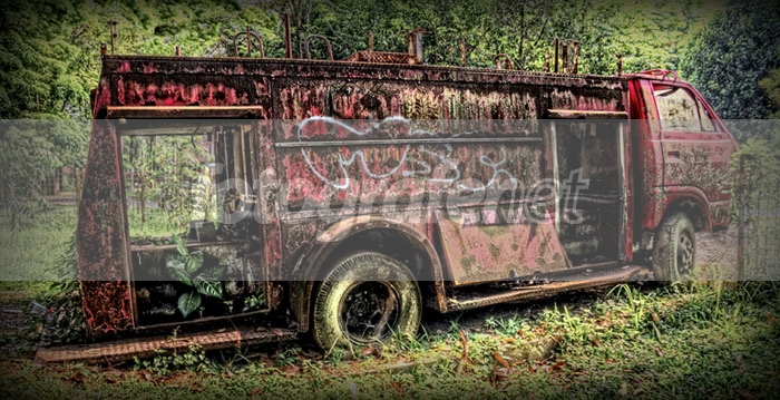 Sedang eksperimen memotret barang2 rongsokan. Ini adalah mobil pemadam kebakaran tua yg tidak terpakai lagi di UI. Foto dibuat dg teknik HDR 3 exposure dengan jarak 1,3 stop.rnrnDate Time Original: 2009:09:30 08:49:36rnISO Speed Ratings: 100