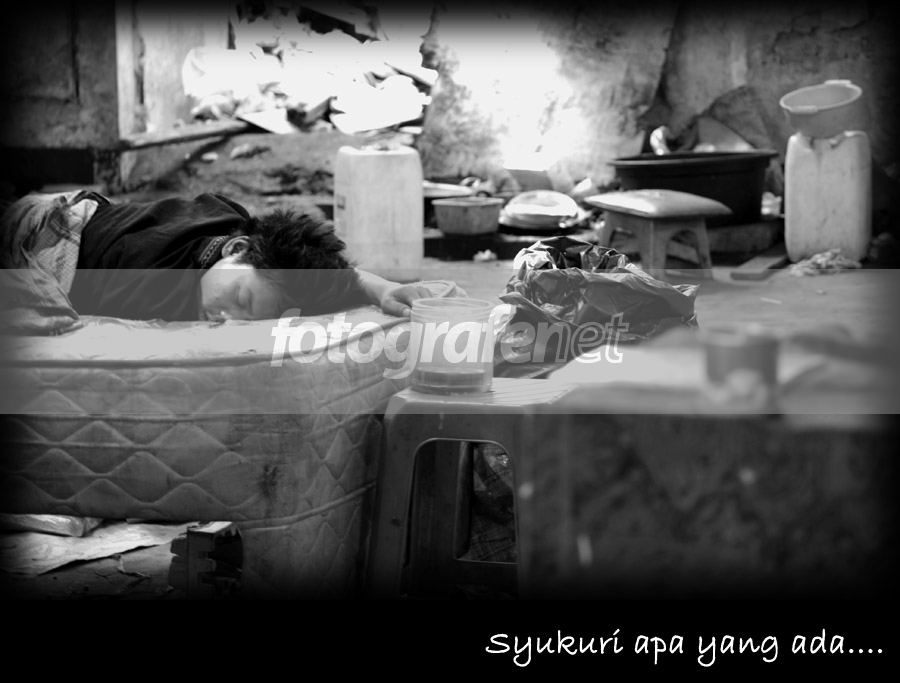 Foto ini diambil dari tempat pengumpulan sampah di daerah kumuh pusat kota.nTerlihat anak muda yang tertidur nyenyak walau sekitarnya bau sampah dan berisik orang memilah sampah.nnDate Time Original: 2009:10:10 09:57:27nISO Speed Ratings: 100