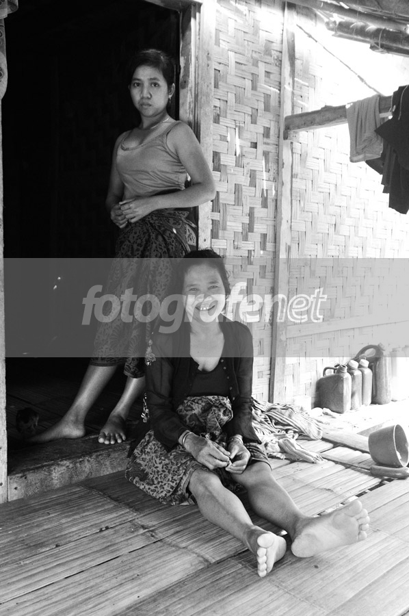 Ibu dan anak sedang bersantai di beranda rumah, ketika kami melewati perkampungan baduy luar menuju ke jembatan akar.