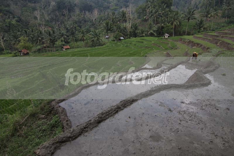 Petani nampak tengah bekerja di Lembah Bahohor Desa Citapen Kabupaten Kuningan.