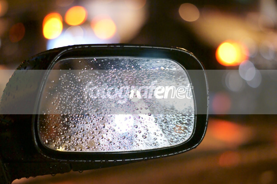 Saya ingin menggambarkan betapa jalan basah selalu membawa macet di Jakarta, yang digambarkan pada refleksi lampu di spion dan bokeh lampu belakang.