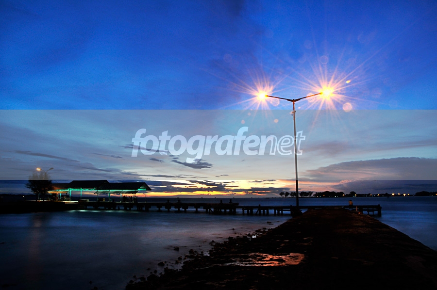 foto ini diambil saat senja di dermaga pulau pramuka, kepulauan seribu