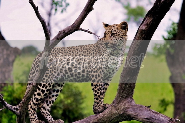January 2010..nnThe leopard (pronounced /ˈlɛpərd/), Panthera pardus, is a member of the Felidae family and the smallest of the four "big cats" in the genus Panthera, the other three being the tiger, lion and jaguar. Once distributed across southern Asia and Africa, from Korea to South Africa, the leopard's range of distribution has decreased radically due to hunting and loss of habitat, and the greatest concentration of leopards now occurs chiefly in sub-Saharan Africa; there are also fragmented populations in Pakistan, India, Indochina, Malaysia, and China. Due to the loss of range and declines in population, it is graded as a "NEAR THREATENED" species. Its numbers are greater than other Panthera species, all of which face more acute conservation concerns.[2]nnThe leopard has relatively short legs and a long body, with a large skull. It is similar in appearance to the jaguar, although it is of smaller and slighter build. Its fur is marked with similar rosettes to those of the jaguar, though the leopard's rosettes are smaller and more densely packed, and the leopard's rosettes do not usually have central spots as the jaguar's do. Both leopards and jaguars that are melanistic (completely black or very dark) are known as black panthers.