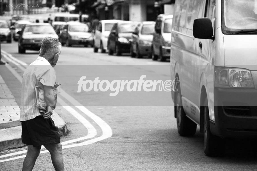 Title foto cocoknya untuk jurnalistik. IMHO kalo cropnya di exstend sampe kaki kakek tsb dan kesan mobilnya mau belok ke kakeknya di munculkan , tentu akan lebih dramatis