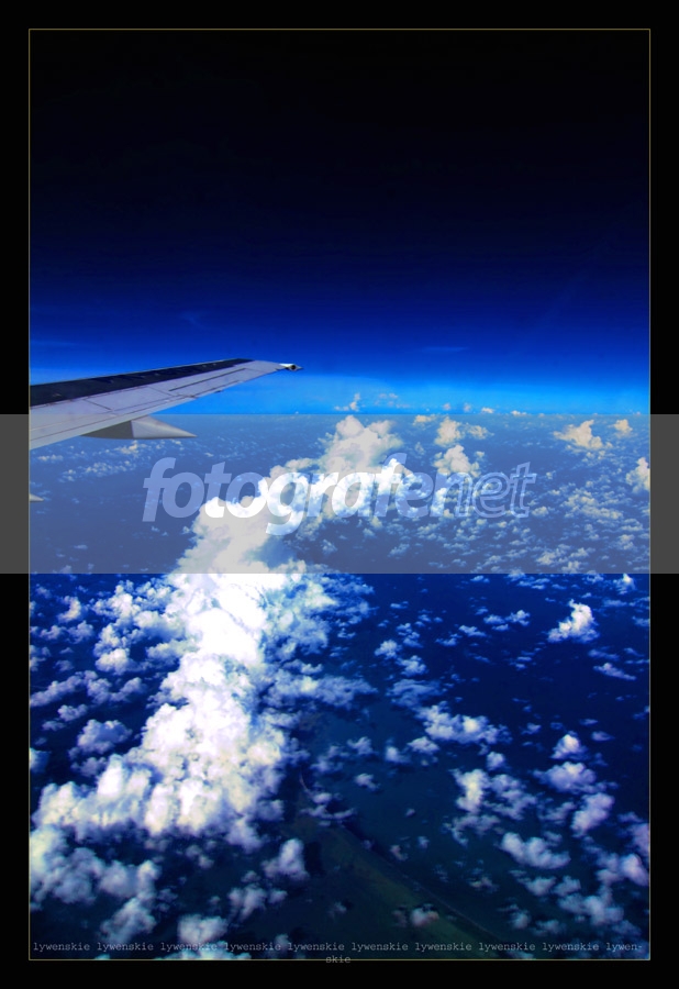 Selalu menarik perpaduan langit biru dg awan dan sayap pesawat. Tonenya biru tenannn...! Salam.