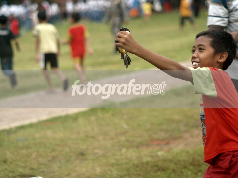 Date Time Original: 2010:05:03 08:39:41nISO Speed Ratings: 100nnSeusai Upacara Peringatan Hardiknas, ada acara pelepasan burung berkicau..nIni anak badung banget, sudah dihalau Satpol PP masih nekat nangkepin burung-burungnya.. pake pamer hasilnya lagi...
