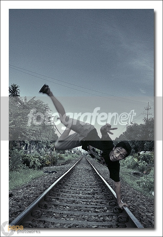 Wow, berani ya, kalau ada kereta lewat kek gimana, :) Nice shoot, speednya naikin biar makin freeze