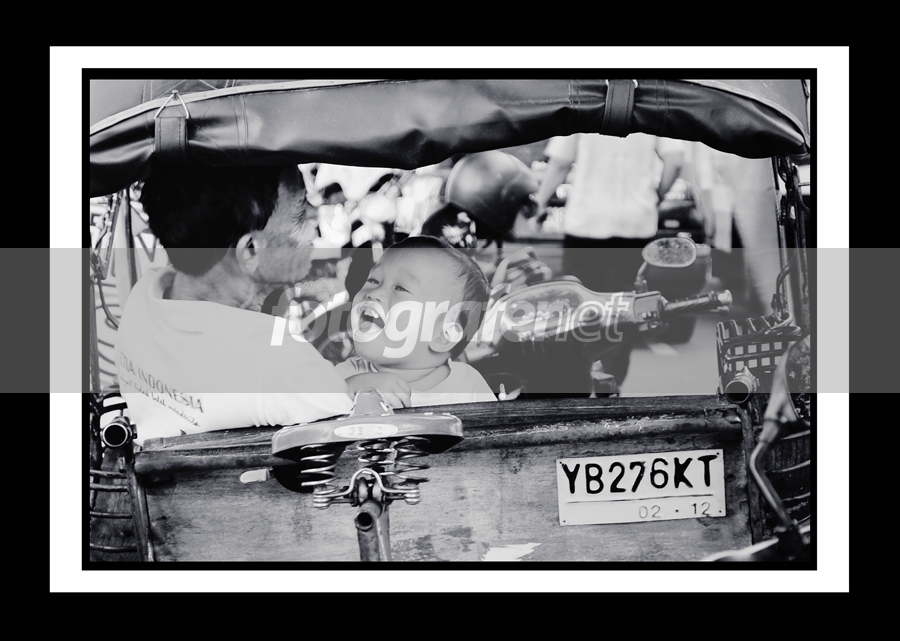 TERPINGKALnSembari menunggu penumpang, sang ayah menyempatkan waktunya bercengkerama dengan anak laki-lakinya dalam becak yang menjadi penopang hidupnya.nnnISO Speed Ratings: 100