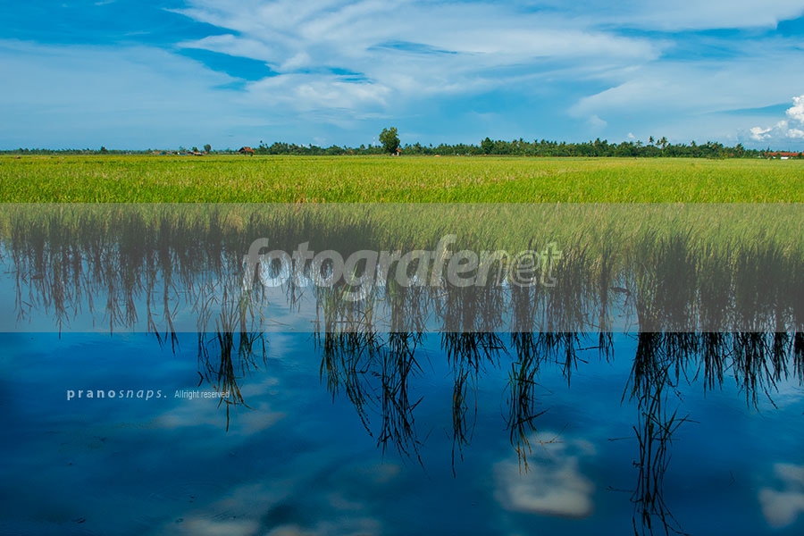 Siang-siang waktu mudik saya sempatkan mampir ke sawah dekat rumah nenek dan tertarik untuk mengabadikan salah satu viewnya yang sebenarnya dekat dengan pantai.