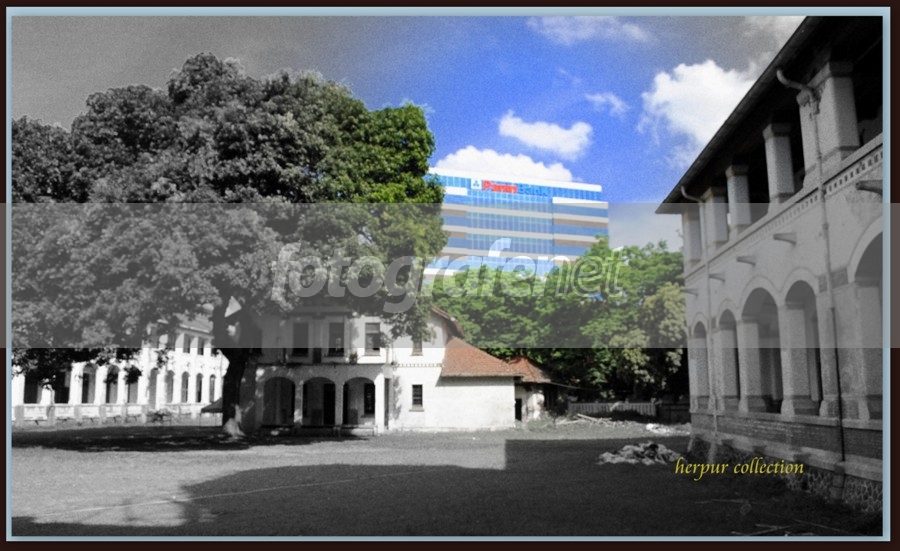 Salah satu sudut bagunan Lawang Sewu dimana masih mempertahankan bentuk bangunan kuno jaman Belandanya diantara Bangunan bangunan modern