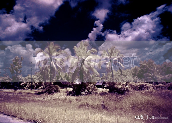 false colornya asik, cuma sedikit pixelate aja di bagian awannya, biasanya kalo sy setting di camera IRnya under saja dulu di file aslinya, komposisi jalan yg terbawa sedikit menggangu, keep xploring IR nya dgn berbagai variasi warna lain....this is good sir, salam hangat sll